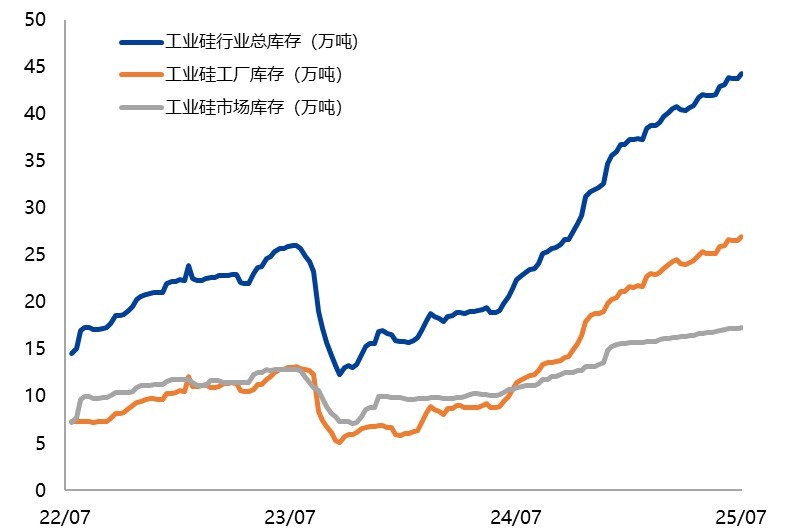 硅价跌破成本线,行业危机凸显:在前期扩产惯性及西北高开工支撑下,产量持续增长。2025年上半年平均产能利用率跌至33%(显著低于2021-2024年49%),加之70万吨库存作为印证,工业硅虽过剩程度略弱于多晶硅,但也明显超过下游消化能力。受益于硅煤、电极等原料降价及节能技术推广,2025年工业硅加权平均现金成本降至8700元/吨,已跌破大部分企业现金成本线,行业陷入全面亏损,亟需政策引导产能出清。