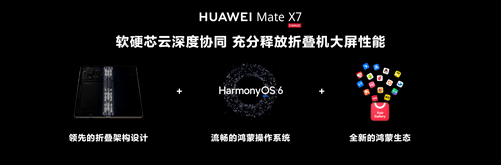 全新华为MateX7在设计、性能、可靠性、影像及大屏AI等维度实现全面进阶:背板首次融合传承1600年的非遗云锦工艺,以东方美学与尖端科技的交融,打造极具辨识度的艺术质感;通过创新折叠屏架构与鸿蒙系统的深度软硬协同,整机性能实现跨越式提升,配合超大VC均热板与石墨烯跨轴散热系统,确保高性能持久稳定输出;内置5600mAh大电池,在户外探索模式极限续航配置下可连续使用长达10天;超可靠折叠玄武架构进一步强化整机抗摔、抗压与耐用性,为用户带来安心可靠的使用体验;全新升级的第二代红枫原色摄像头,搭配超高动态主摄与支持5cm对焦的长焦微距镜头,整体实力全面对标直板旗舰;小艺智能体提供更主动、更个性化的服务,结合大屏AI能力,实现高效分屏协作、平行视界与AI创作,充分释放移动大屏生产力——可以说,MateX7不仅重新定义了折叠屏的综合体验,更以多项行业领先技术再次引领创新方向,打造出真正全能、可靠且富有创造力的折叠旗舰新标杆。