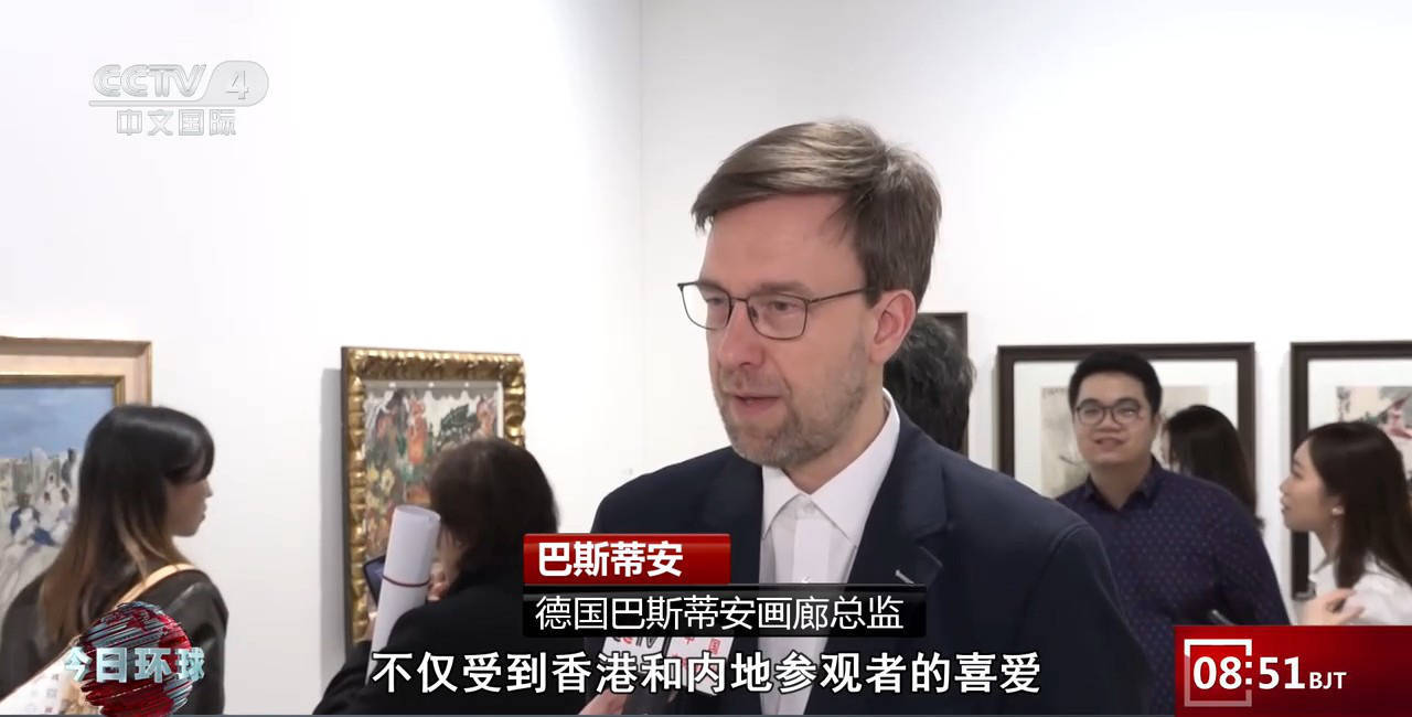 德国巴斯蒂安画廊总监 巴斯蒂安:我看到他(崔如琢)的作品不仅受到香港和内地参观者的喜爱,也同样受到来自欧洲、美国以及其他国家的国际参观者的欢迎。我觉得之所以大家喜欢,是由于崔如琢先生深谙传统笔墨精髓,又不拘泥于古法,他以一种特殊的墨法,将指墨、积墨、泼墨等技法推向新高度。这种独辟蹊径的创作方式,对于欧洲及海外观众而言,充满了别样的魅力与新意。
