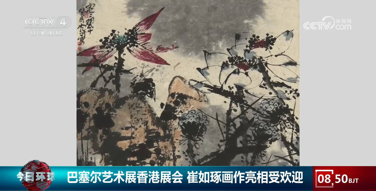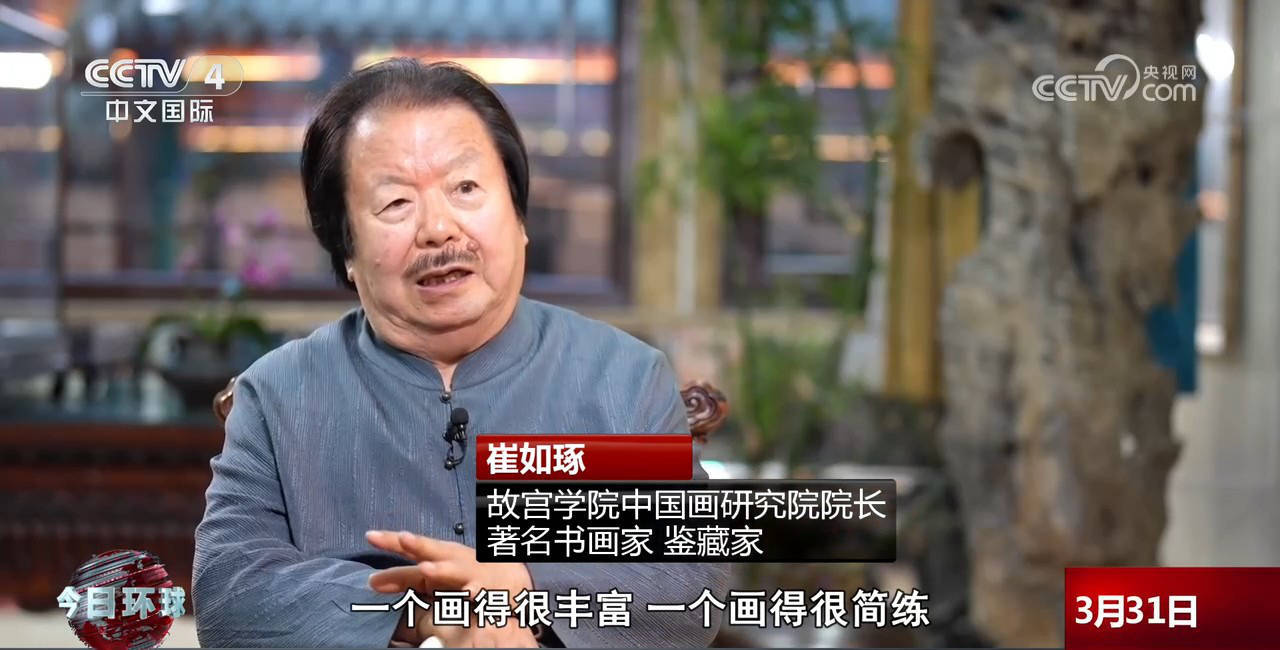 故宫学院中国画研究院院长、著名书画家、鉴藏家 崔如琢:一个拿笔画的,一个拿手画的,一个画得很丰富,一个画得很简练。那雨景春景画的是积墨、泼墨,层次有很多,但是又很有特点。那荷花积墨、指墨,都不一样,都有不同的特点,我们不只是看到参加一个展览,应该意识到我们的文化和艺术要走向世界,要和西方并驾齐驱,要在地球上百花齐放,西方的花、东方的花大家都要盛开。